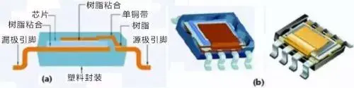 与PGA封装方式一样,该封装方式将芯片包裹在塑封体内,无法将芯片工作时产生的热量及时导出,制约了MOSFET性能的提升;而且塑封本身增加了器件尺寸,不符合半导体向轻、薄、短、小方向发展的要求;另外,此类封装方式是基于单颗芯片进行,存在生产效率低、封装成本高的问题。