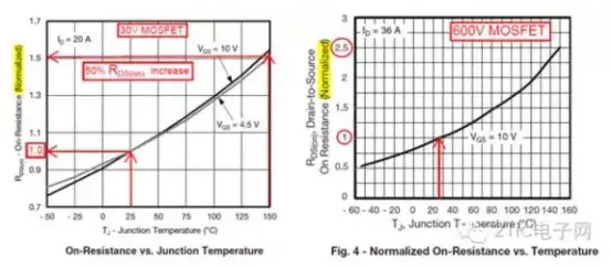 图1 RDS(on)在最高工作温度的30%~150%这个范围内随温度增加而增加