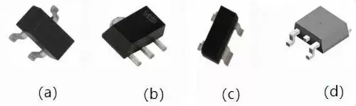 SOT89具有3条短引脚,分布在晶体管的一侧,另外一侧为金属散热片,与基极相连,以增加散热能力,常见于硅功率表面组装晶体管,适用于较高功率的场合,外形如下图(b)所示。