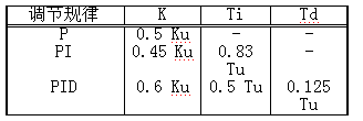 (3)利用Ks和Ts值,按下表给出的经验公式,计算出控制器的参数整定值。