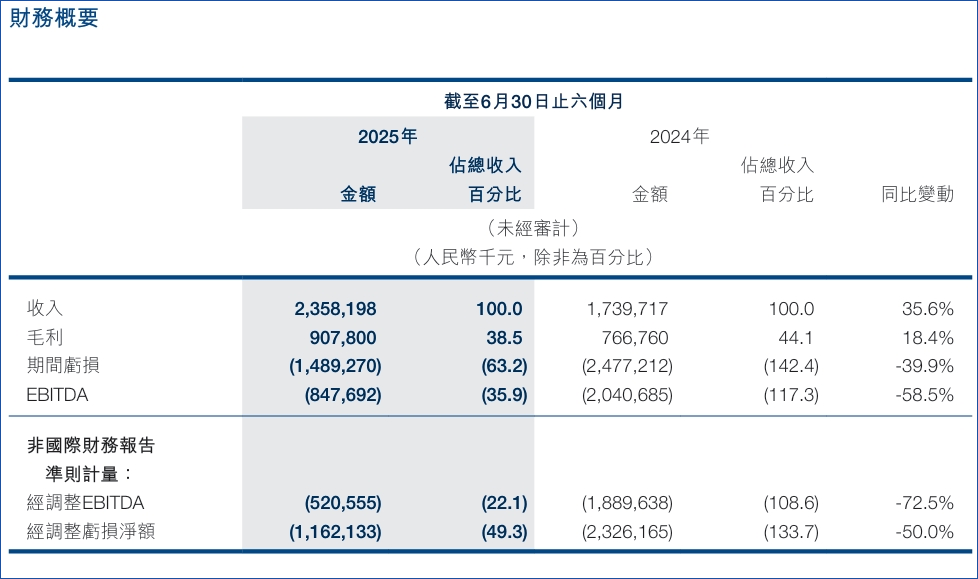 战略方向确立后,商汤科技交出了首份阶段性成绩单:2025 年上半年,公司实现营收 23.58 亿元,同比增长 35.6%;同期净亏损 14.89 亿元,同比收窄 39.9%。与此同时,经调整 EBITDA(息税折旧摊销前利润)、经调整亏损净额分别同比收窄 72.5%、50%,期末现金及现金等价物规模同比增长 46% 至 111 亿元 —— 多项财务数据印证,“1+X” 战略在 “增收” 与 “减亏” 两方面均初步显现成效。