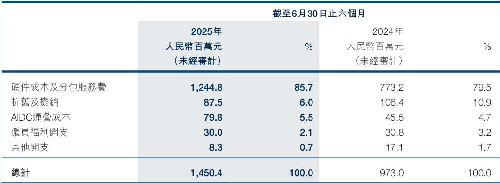 商汤科技全力押注生成式 AI 业务的 “副作用”,在 2025 年上半年财报中已初现端倪。报表数据显示,本期销售成本高达 14.5 亿元,其中硬件成本及分包服务费占比 85.7%(约 12.4 亿元),较去年同期有明显提升;与此同时,研发费用同比增长 12% 至 21.1 亿元 —— 双重成本压力下,公司毛利率从去年同期的 44.1% 降至 38.5%。尽管目前公司仍保有 111 亿元现金及现金等价物(期末数据),但高昂的成本支出与视觉 AI 业务 “造血能力” 的下滑,已成为其盈利道路上的两大核心阻碍。