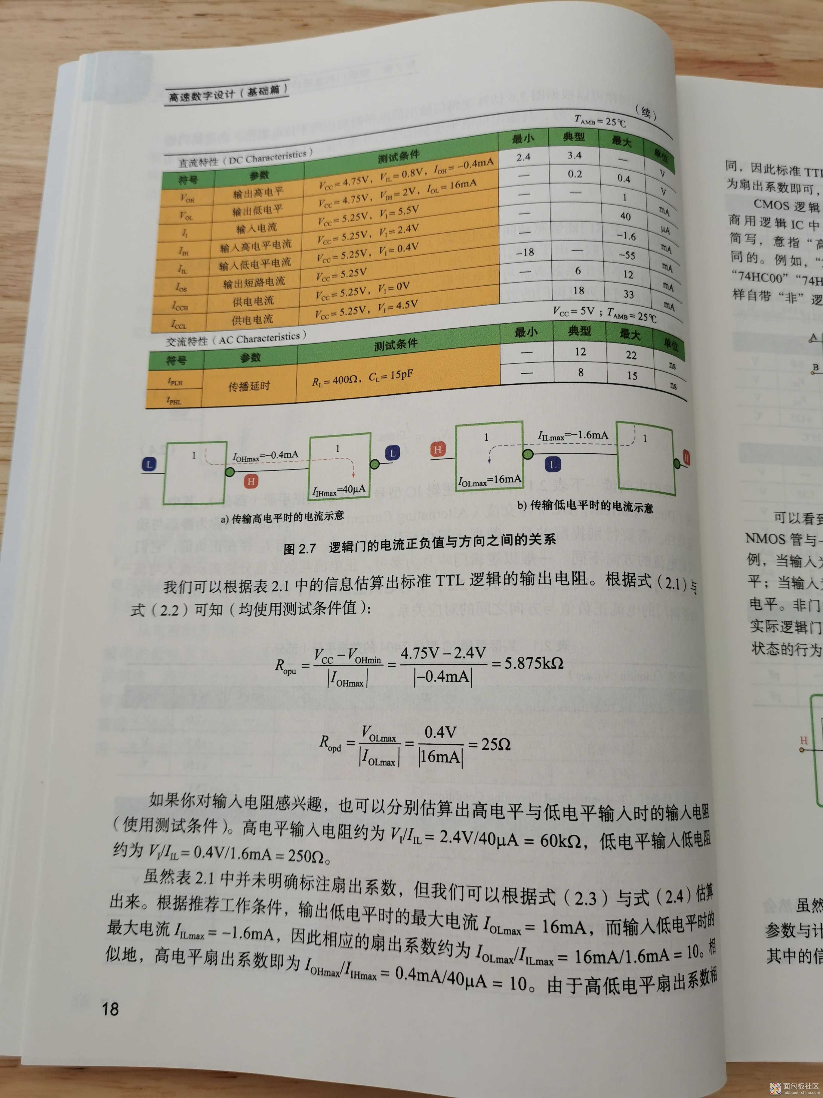 电路设计人员比较熟悉电平关系,而较少关注逻辑门的驱动能力。针对VoHmin、ViHmin,ViLmax,VOLmax这几个参数,了解得非常透彻。然而对逻辑门的驱动能力,可能接触的比较少。又在设计电路时,一般都能满足驱动能力,就更加没有机会去深入了解逻辑门的驱动能力。本书第2章 ,针对电流进行了详细的阐述,相信阅读了本章之后,对逻辑门的驱动能力有所了解。