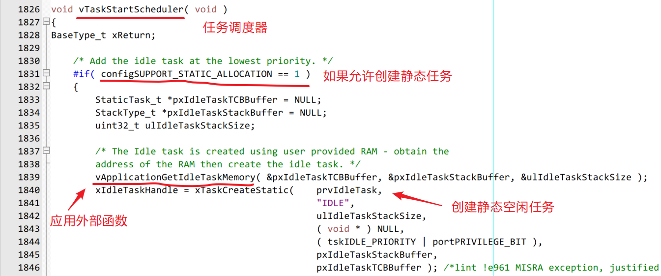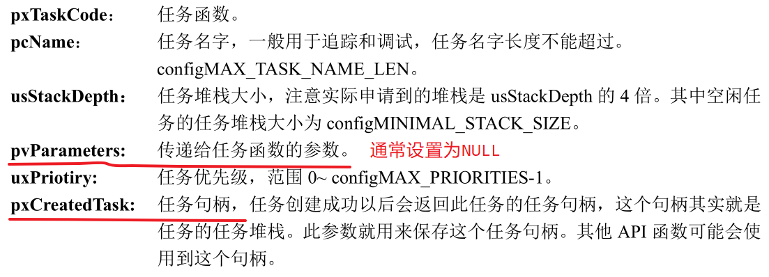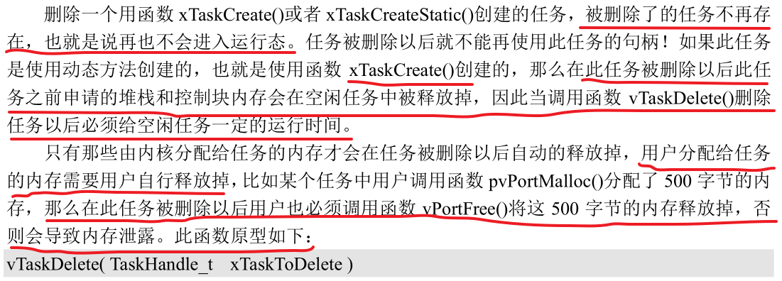 在 FreeRTOS 源码中(task.h),给出了函数使用方法: