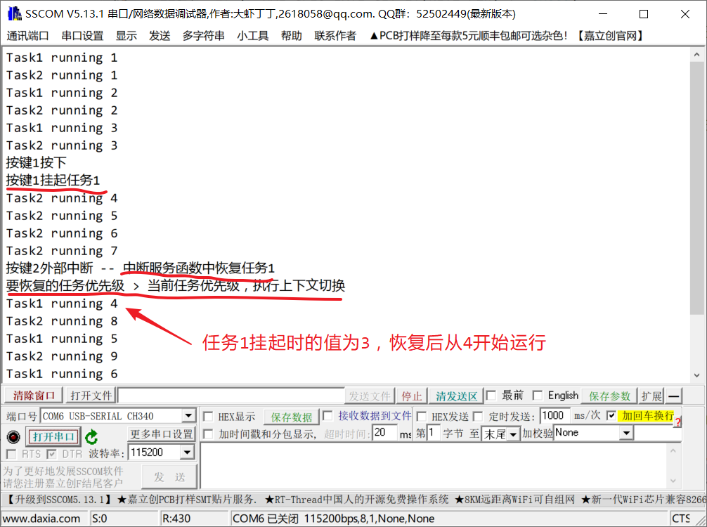 printf("要恢复的任务优先级 > 当前任务优先级,执行上下文切换\r\n");
