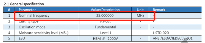 根据主控芯片规格书需求选择合适的频率,常见的频率有实时时钟频率32.768KHz、微控制器系统时钟频率1MHz~50MHz。