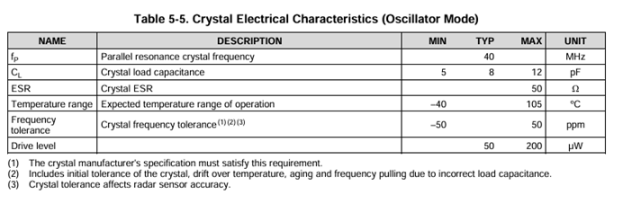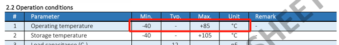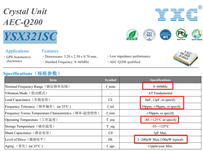 从上图可知此主控芯片对晶振的要求:频率40MHz,精度±50ppm,负载电容8pF,驱动功率50~200uW,温度范围-40~105摄氏度。我们可以选择扬兴科技的XC2EY2H4KO-114OLP-40M。