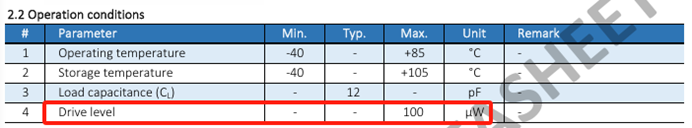 晶振需匹配主控芯片的驱动能力一般小于1mW。