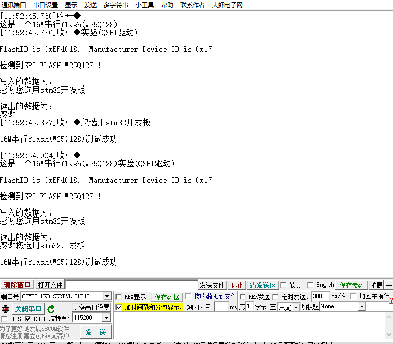 stm32使用spi接口与W25Q128 通信,读取W25Q128 ID正确,向flash指定地址写入数据并读回,写入和读出数据一致。